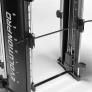 Barra Guiada - Possui a barra guiada com rolamentos em aço cromado na parte traseira, para uso com anilhas, o que torna o equipamento ainda mais versátil;